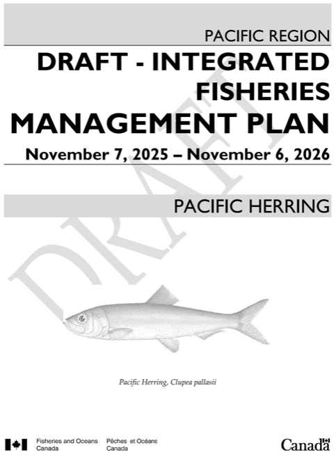 DFO’s 2026 Draft Integrated Fisheries Management Plan (IFMP) for Pacific Herring is now out and the public need to get their recommendations to them by November 17th.